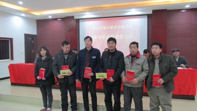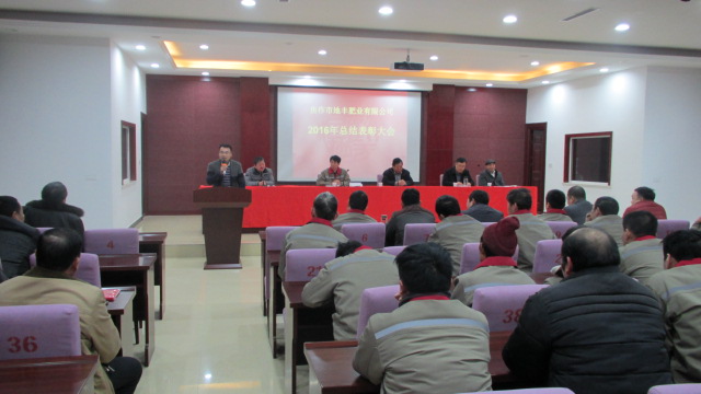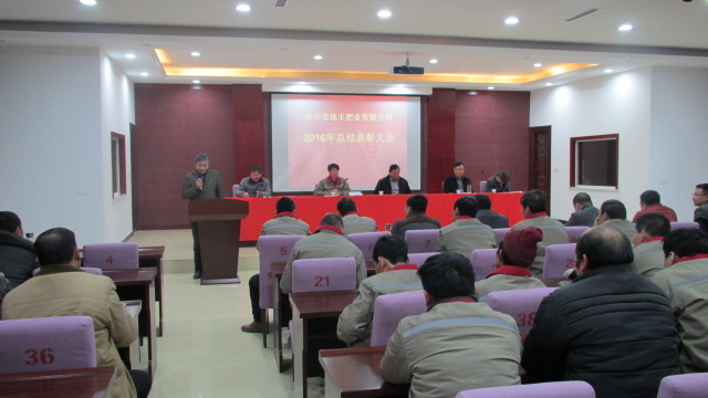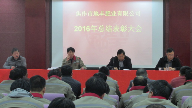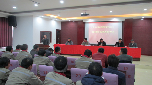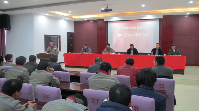 1月22日,焦作市地豐肥業(yè)有限公司2016年度總結表彰大會在三樓多功能廳隆重舉行。公司董事長李戰(zhàn)通,生產(chǎn)副總褚萬里、銷售副總林現(xiàn)仁等領導出席會議。